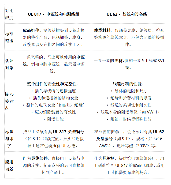 核心UL标准:UL 817 vs. UL 62