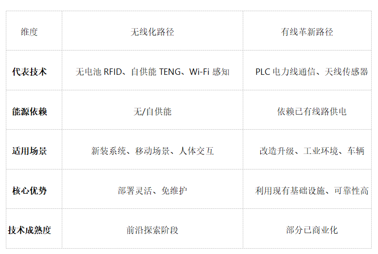 传感器摆脱线缆束缚的技术演进,正沿着两条截然不同的路径展开:一条是完全“剪掉”线缆的无线化路径,另一条是改造“既有线路”实现一线多能的创新路径。这两条路径在技术原理和应用场景上各有侧重,共同推动着传感系统的范式变革。